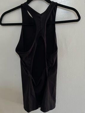 Sleek racerback tank. Stretchy, form-fitting silhouette. Smooth neckline. Versatile for workouts or layering. Soft fabric