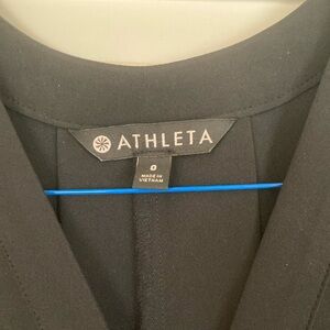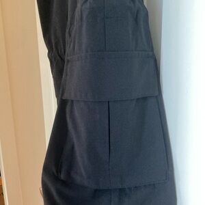 Stylish black sleeveless romper from Athleta. Perfect for summer, with a drawstring and two pockets