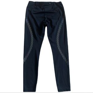 Athleta spectrum sonar leggings 7/8 length. These are super sleek medium compression leggings. Sweat wicking with a never ending drawstring. It has a waistband with a key zip pocket on middle back with reflective stripes wrapping down legs. A little bit of piling on stitching as seen in photos.