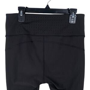 These leggings by Athleta are made with their sculptex trucool fabric and feature perforations at the waist band and on the leg to create a cooling when being active. There is a hidden media pocket on the front of waist and leggings are a cropped/capri style length. Fabric has very little wear, leggings are in excellent condition!