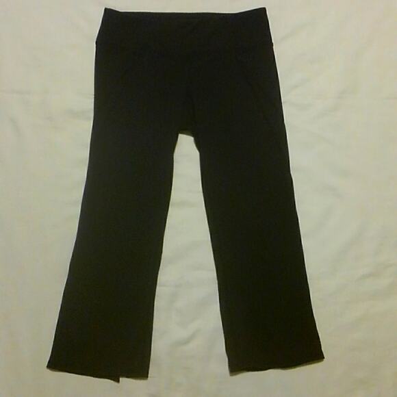 Athleta pants with short slits up both legs and lots of stretch. These solid black pants are in excellent pre-owned condition. Tag size XS. Please look at the photos. They show the actual measurements taken laying flat. Waist 26", front rise 7", inseam 21.5".