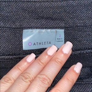 Workout skinny joggers with stretch by Athleta in a black and grey ribbed texture. 3 front pockets with zippers and back pockets. Great to store license or lipgloss!