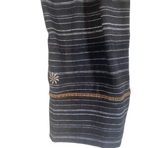 The Athleta Black Striped Relay Capri Cropped Leggings are a stylish and comfortable addition to any wardrobe. These leggings are designed for women and come in size small. The black and white striped pattern is a modern and classic look that will never go out of style. The cropped length is perfect for pairing with your favorite sneakers or sandals. The fabric is lightweight and breathable, making it ideal for any activity. These leggings are sure to become a go-to in your wardrobe.