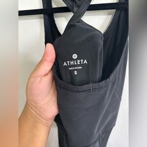Pre-owned black Athleta Raceback tank top with ruched sides. Size small.