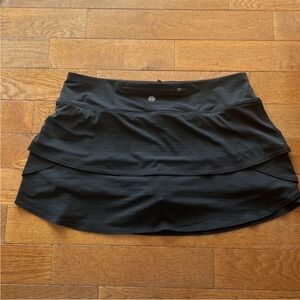 This black mini skirt from Athleta combines a skater style with tiered layers, making it ideal for both athletic and casual settings. Crafted from lightweight material, it offers ease of movement and features built-in shorts for added coverage. The wide waistband ensures a comfortable and secure fit.