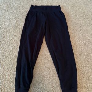 Discover the perfect blend of style and comfort with Athleta's black track pants. These joggers feature a relaxed fit with tapered ankle cuffs, crafted from a soft knit material ideal for casual outings or light exercise. Enjoy the sleek design and superior comfort that make these joggers a wardrobe essential.