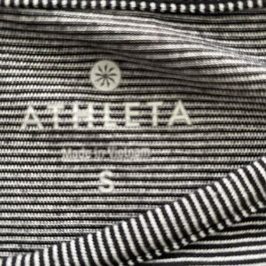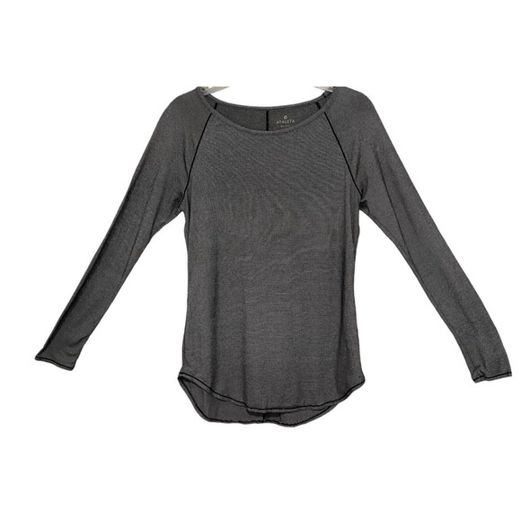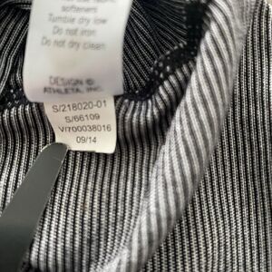 Elevate your activewear game with this Athleta long sleeve top in size S. The black and white micro stripe pattern adds a touch of style to your workout wardrobe. The pullover closure and machine washable fabric make it convenient for gym and training sessions, yoga, hiking, and running and jogging. Perfect for the winter, fall, and spring seasons, this basic style top is designed to keep you comfortable during your workouts. The garment care is easy, and it is not vintage. Get your hands on this Athleta top and match it with your favorite activewear bottoms for a perfect workout look.