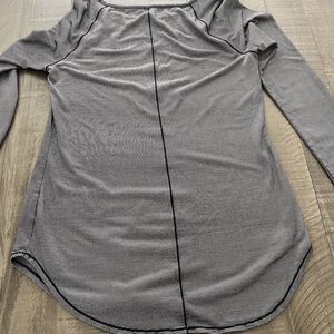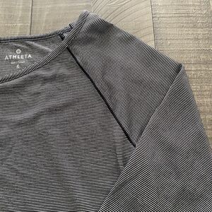 Athleta Black White Micro Stripe Shanti Long Sleeve Athleisure Top Shirt Size S
