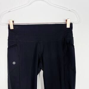 Athleta Black XSmall XS Mesh Textured Crop Capri Leggings Workout Running Pocket