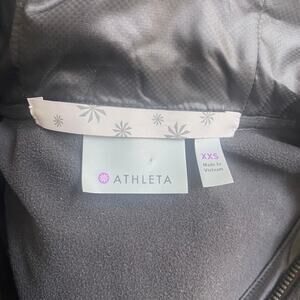 Athleta Black Zip Hooded Jacket Size XXS. Excellent condition, like new. Solid black. Fitted. Moisture wicking technical workout material. Front zip pockets.