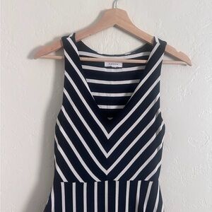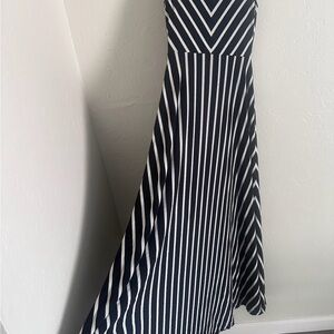 Chic maxi dress with bold stripes. Features a stylish V-neck. Perfect for versatile wear.
