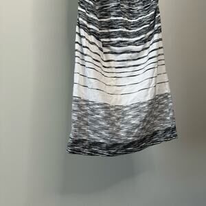 Athleta Black and White Striped Sleeveless Rouched Maxi Stretch Bodycon Dress