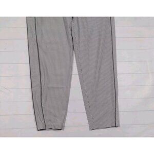 Stylish black and white striped track pants. Comfortable fit with side pockets. Perfect for casual wear.