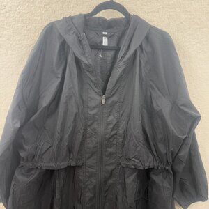 Athleta Black hooded Longline Parka rain jacket full zip relaxed Light sz XL