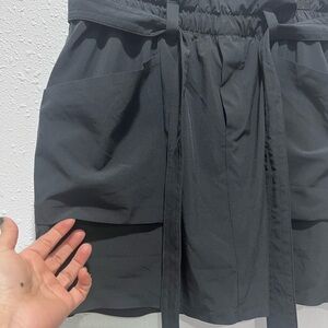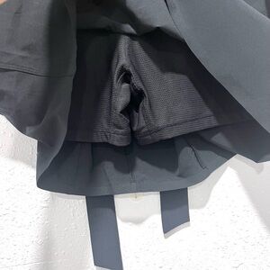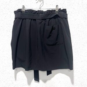 Pre-owned black skirt featuring two large front pockets and a back pocket, with an elastic waistline in a paperbag style and a belt. Ideal for tennis, pickleball, and golf, it offers versatile styling..