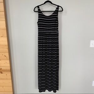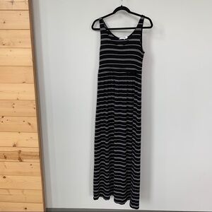Athleta Black w/White Stripes Sleeveless Maxi Dress Size S