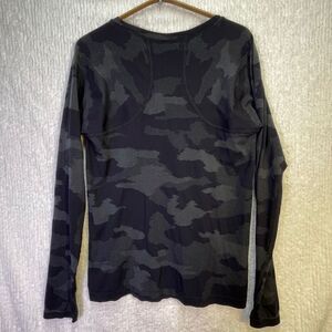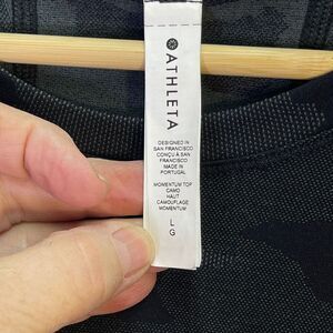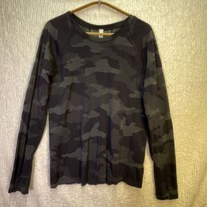 Athleta Black Gray Speedlight Camo Long Sleeve Athletic Momentum Top Size Large