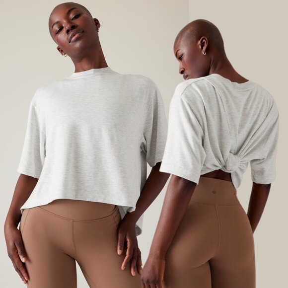 Great condition. This versatile tee combines softness with style — perfect for layering up to and from your workout, or lounging in comfort. The Nirvana fabric is buttery-soft and lightweight, and the open back design adds breathability and a touch of style. Wear the back loose or tie it for a cropped look.