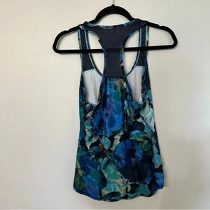 Athleta Blue Abstract Floral Racerback Sleeveless Scoop Neck Tank Size XS