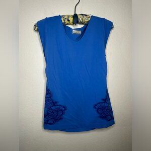 Athleta Blue Blouse Stretchy Form Fitting Tight Size Medium Casual Summer