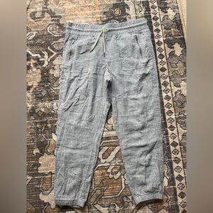 Athleta Blue Cabo Linen Jogger Pants pockets elastic waistband stretch