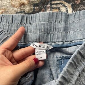 Athleta Blue Cabo Linen Jogger Pants pockets elastic waistband stretch
