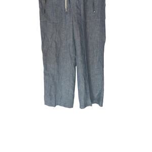 Athleta Blue Coastal Cabo Linen Wide Leg Pants Lagenlook Beachy Basic Size 4