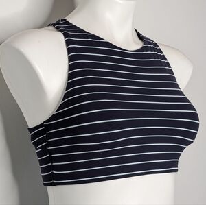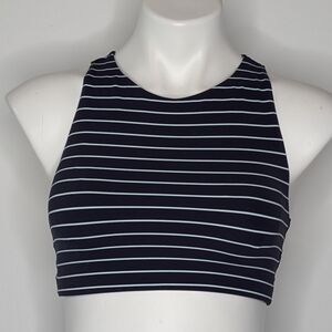 Athleta Blue High Neck Racerback Sports Bra S. Two tone blue striped exercise bra. Good condition.