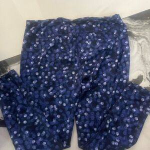 These Athleta leggings feature a striking blue-on-blue abstract pattern, offering a stylish and modern look. Made from a stretchy material, they provide a comfortable fit perfect for athletic or leisure activities. The full-length design ensures a sleek silhouette down to the ankle.