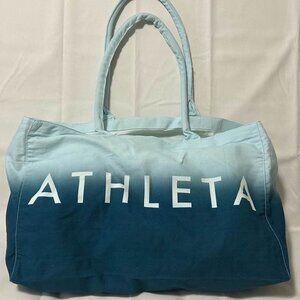 Stylish and functional, this Athleta tote bag features a beautiful blue ombre design with bold logo detailing. Made from sturdy canvas, it’s spacious enough to carry gym gear, beach essentials, or everyday items. The double handles make it comfortable to carry on the shoulder or by hand. Perfect for workouts, travel, or casual outings, this Athleta tote combines sporty style with everyday convenience.