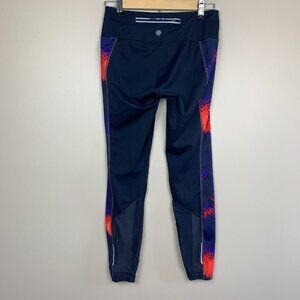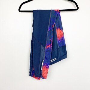 Athleta Blue & Orange Abstract Print Mesh Leggings - Size Medium. In great condition. Inner drawstring, back pocket - some minor cracking on the reflective material.