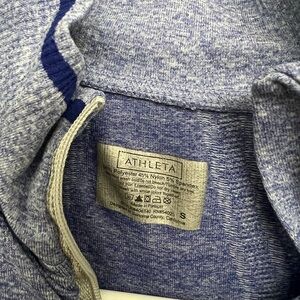 Athleta blue long sleeve top with a quarter-zip design and thumb holes for added comfort.