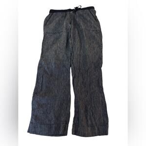 Athleta Blue Striped Bali Linen Crop High Waisted Wide-Leg Pants, size 6