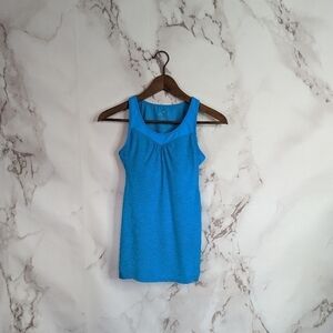 Athleta Blue Tank Built In Bra Padded Shelf Blue Cut Out High Neck Top