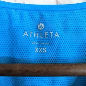 Athleta Blue Tank Built In Bra Padded Shelf XXS Blue Cut Out High Neck Top