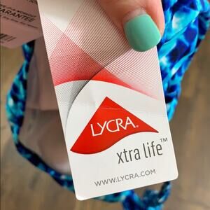 Size 32 B/C. 84% Nylon 16% Lycra Spandex. Length 28 inches. Armpit to armpit 12 inches. Stretchy. Great condition!