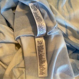 "Super cute and soft blue and white v-neck tee with side slits. In great preloved condition.
