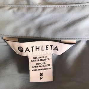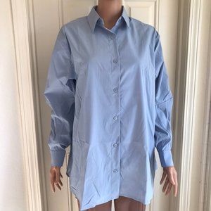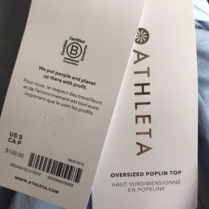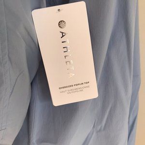 Athleta Blue oversized poplin shirt Top Size S. The blue color is amazing and would work so well with your yoga pants for those work Zoon calls.