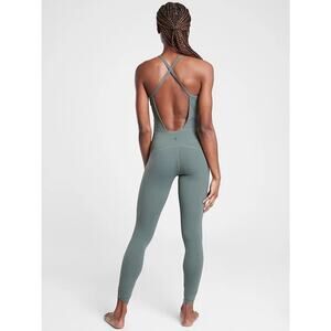 Athleta Bodysuit Pirouette Womens Small Green One Piece Stretchy Criss Cross