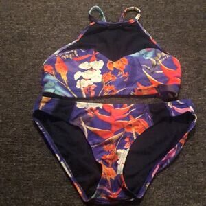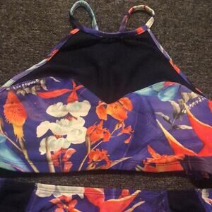 Athleta Brand Lucia Floral Purple High Neck Bikini Women's size Small