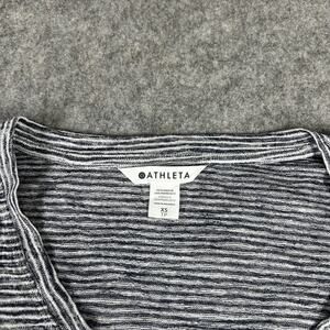 Athleta Breezy Tee Shirt Women’s XS Gray White Striped Short Sleeve V Neck
