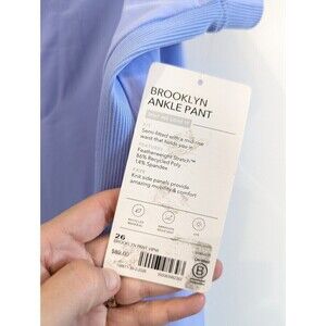 New with tags. Athleta Brooklyn Ankle Pant in women's plus size 26. Blue periwinkle color. There is a light mark that will likely wash off (see photos). Please see photos for measurements and material details.