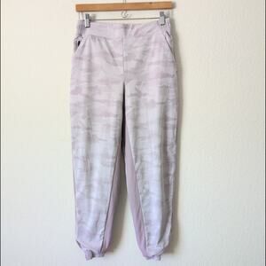athleta size 6. double lined pants Brooklyn lined camo jogger pink 985549 tapered jogger leg ribbed contrast detail inseam 29. rise10. flat waistband 14. Purple Pink. In like new condition!