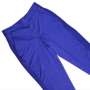 Elevate your activewear with these Athleta Brooklyn pants, featuring a noble blue color and tapered leg style. These pants are perfect for a variety of occasions, including travel, casual wear, work, and even athleisure. The pull-on closure and mid-rise fit make them comfortable and easy to wear.