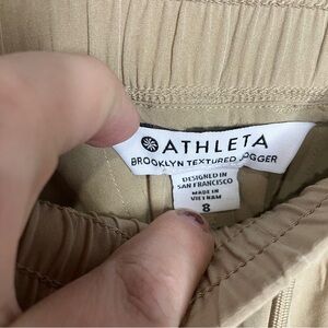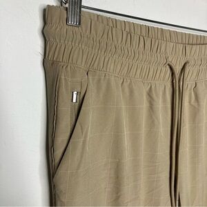 Athleta Brooklyn Textured Joggers tan with white windowpane pattern size 8