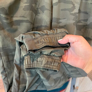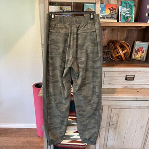 EUC Athleta Brooklyn textured lined jogger size 6. These joggers are amazing! Camo colorway with plain green stripes down the sides! Front pockets with a front side zipper pocket and back zipper pockets. Inner liner is so buttery soft and smooth with great stretch!