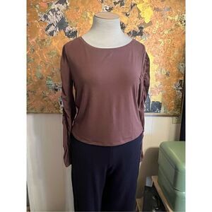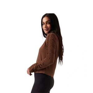 Athleta Brown All Around Ruched Long Sleeved Top Soft and Stretchy! Lightweight
