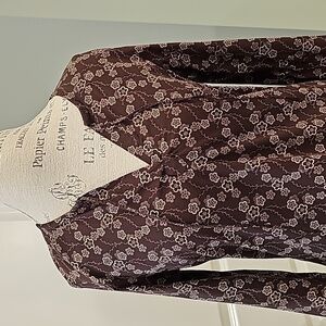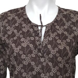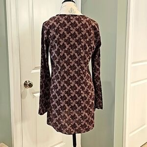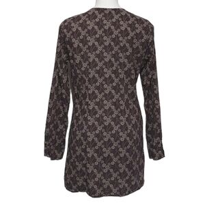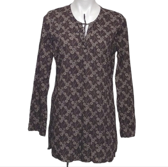Athleta Brown And Tan Floral Print Long Sleeve V-Neck Tunic Top - Size Medium
