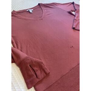 Athleta Burnt Orange V Neckline Long Sleeve Relaxed Athleisure Sweater/Tee Med