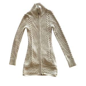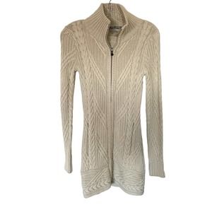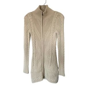 Athleta Cable Knit Balkan Full Zip Sweater Long Sleeve Tan Size XXS
